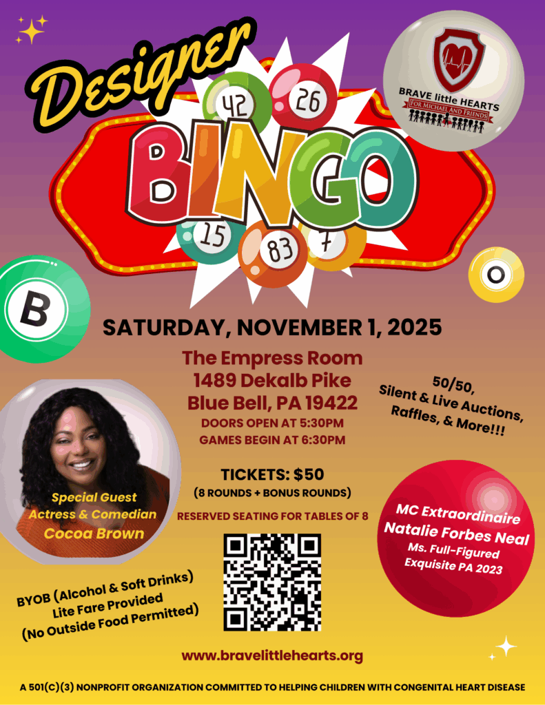 Join us at The Empress Room in Blue Bell, PA for a night of fun and games. Get ready to play BINGO and win extraordinary prizes featuring designer selections that will make your heart skip a beat! This in-person event is the perfect opportunity to show up and show out as you demonstrate your BINGO skills and win fabulous prizes such as Telfar, Coach, Michael Kors, Kate Spade, Brandon Blackwood, a 65″ flat screen TV and more.